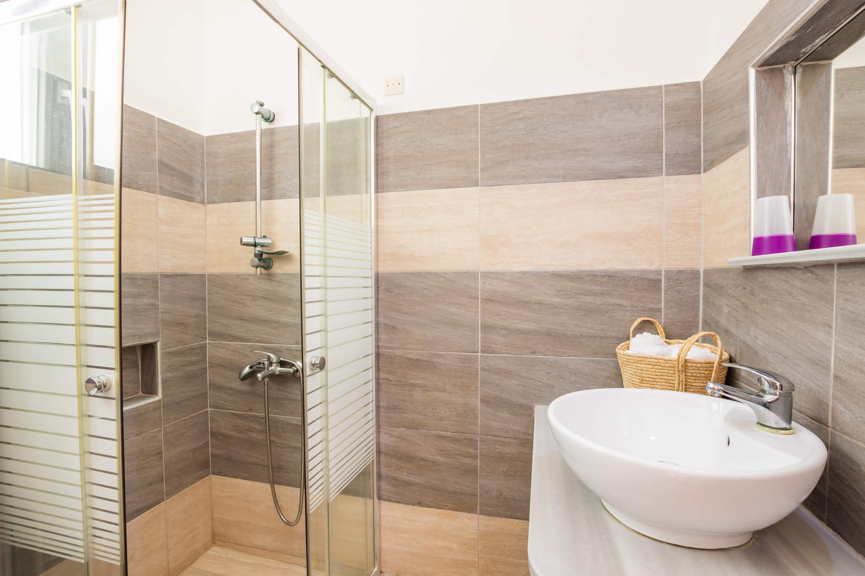 The well-equipped kitchenette includes a cooking stove, refrigerator, kitchenware, and an electric kettle, offering all the amenities for a pleasant stay. The spacious family room features air conditioning, a private entrance, and a beautiful terrace with a sea view — perfect for starting your day with a coffee. The private bathroom with a shower is available for guests. The room is elegantly furnished with a comfortable double bed, a single bed, and a sofa that can be converted into a single bed, ensuring a restful sleep for all guests.